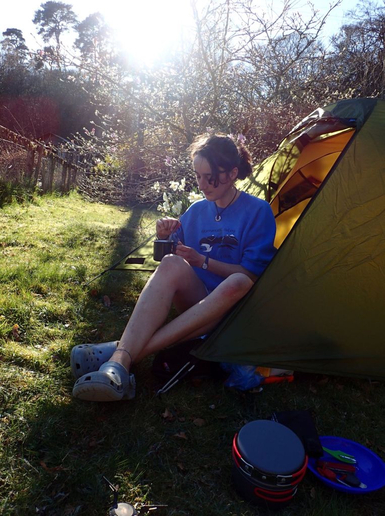 The illustrating photos were mostly taken by my wonderful sister and depict our not-so-wild garden as opposed to a genuine wild camp. We may be in lockdown and unable to actually go wild camping right now, but what better way to spend a sunny Easter weekend than to go pretend-camping in the garden?