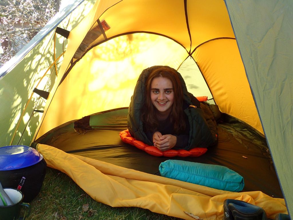 My sister keeping cosy in a summer Vango sleeping bag