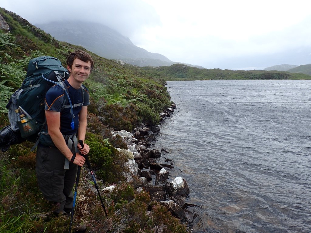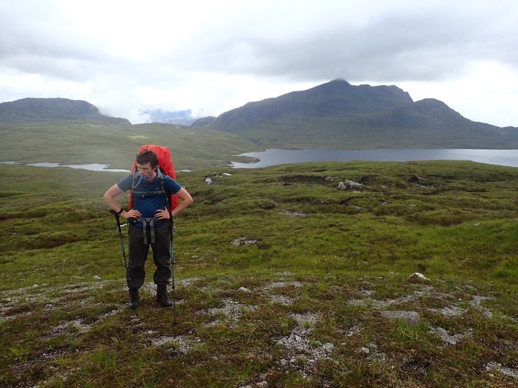 The next day dawned just as damp and misty as the last; our hillwalking friends had long since departed into the mountains on their quest to conquer the Fisherfield Munros. It seemed to take us a long time to pack up and get ready, but eventually we set off into the rain once more, in boots that were still saturated from the day before. It had been nearly a week since our last civilisation break at Shiel Bridge, and we’d been walking continuously for nearly 11 days. Fatigue was starting to set in as we skirted the flanks of An Teallach and pushed wearily on towards Ullapool and the end of Stage 2.